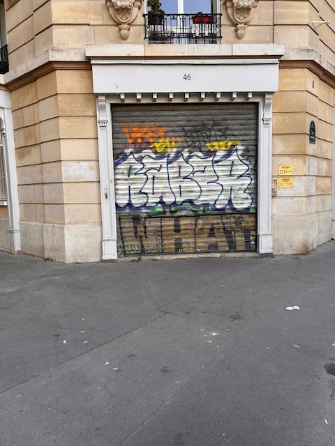 La lutte contre les tags engagée par la mairie de Paris est meilleure grâce à la facilité des signalements via le site municipal « dansmarue » et un enlèvement rapide de la part des sous traitants en charge de ces opérations. Il reste néanmoins beaucoup de tags non enlevés sur les rideaux métalliques des magasins, des entrées de parking et des garages, ce qui pose question. L’enlèvement sue ce type de support est plus aléatoire surtout depuis que la mairie offre l’option d’une aide financière réservée aux professionnels, c’est-à-dire essentiellement aux commerçants, pouvant financer, sur le rideau impacté, la « création d’œuvres artistiques » ou bien « la mise en retrait des vitrines des coffres et grilles de fermetures existants, afin de se mettre en conformité avec les dispositions du Plan Local d’Urbanisme Bioclimatique (PLUB) » (*). En termes plus simples, le professionnel peut à ses frais et avec l’aide de la ville (1000€ maximum dans la limite de 80% des dépenses à engager) recouvrir les mauvais tags par des tags plus acceptables ou engager des travaux pour que le rideau soit déplacé et se trouve en retrait des vitrines donc inaccessible aux tagueurs. Ces deux solutions sont bancales car d’une part il faut, si c’est le retrait qui est privilégié, que celui-ci soit possible ‘ la configuration ne le permet pas forcément toujours) et en plus, il faut l’accord de la copropriété puis celui de la direction de l’urbanisme nécessitant la constitution d’un dossier…? Des démarches longues et coûteuses… Quant à la « création d’œuvres artistiques« , il ne faut pas rêver, un tag reste un tag et même si pour certains « fans » de ce type d’art (?), cela peut être plus ou moins agréable à regarder, une pochade quelle qu’elle soit ne s’insère pas véritablement dans la « ville lumière » telle qu’elle doit être préservée. Le décalage est patent.